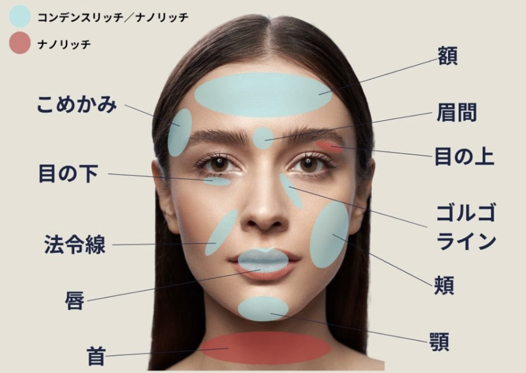 ナノファットが向いているのは、涙袋や目の際、唇、目の下など、皮膚が薄くデリケートな部位です。通常の脂肪やCRFを注入すると、表面がデコボコしたりしこりになることがありますが、ナノファットなら粒子が細かいため、薄い皮膚の下でも均等に広がり、凹凸になりにくいのが特徴です。