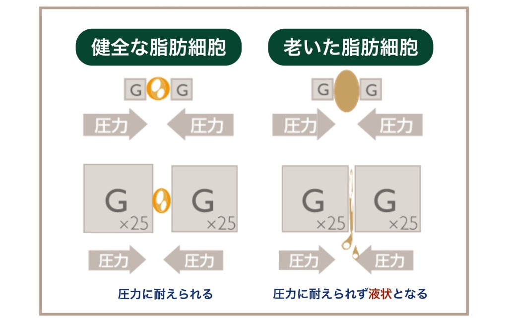 従来の脂肪注入で最も懸念されていたのが、しこりや石灰化といったトラブルです。これらは主に、死活細胞や老化細胞が原因で発生します。