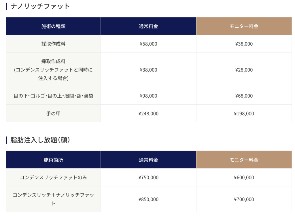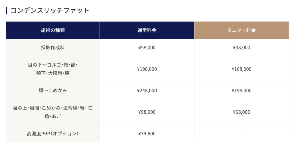 ネクサスクリニックでは、コンデンスリッチファット(CRF)を使ったさまざまなメニューをご用意しています。中でも、「コンデンス入れ放題メニュー」は、気になる複数の部位にまとめてCRFを注入できるお得なプランです。おでこ、こめかみ、頬、ほうれい線など、顔全体のボリュームアップを希望される方に特に人気があります。一度の施術で複数箇所を改善できるので、何度も通う手間も省けます。