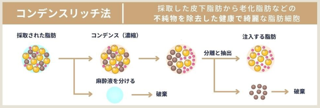 こうした方法では、「脂肪の質の管理」や「精製方法」「無菌状態の確保」が不十分になりやすく、仕上がりや安全性に不安が残りやすかったのです。