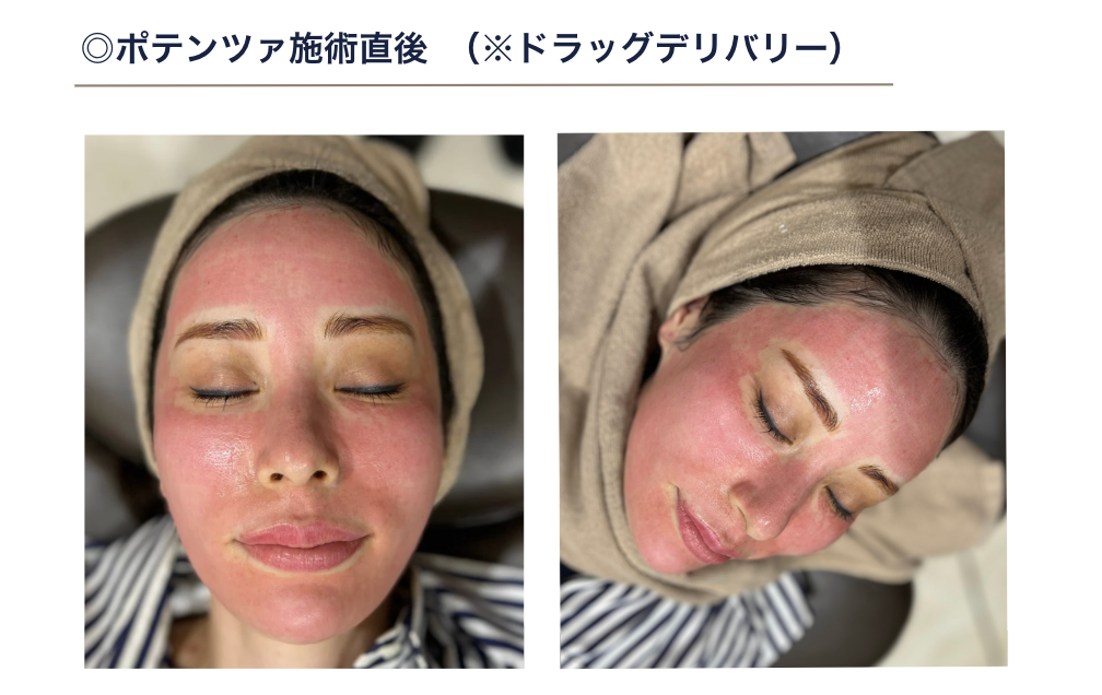 施術直後は、顔全体に赤みとヒリヒリとした刺激感がしっかりと現れます。