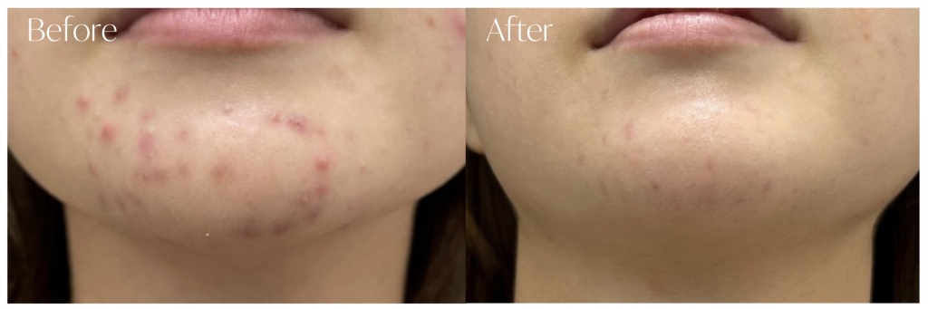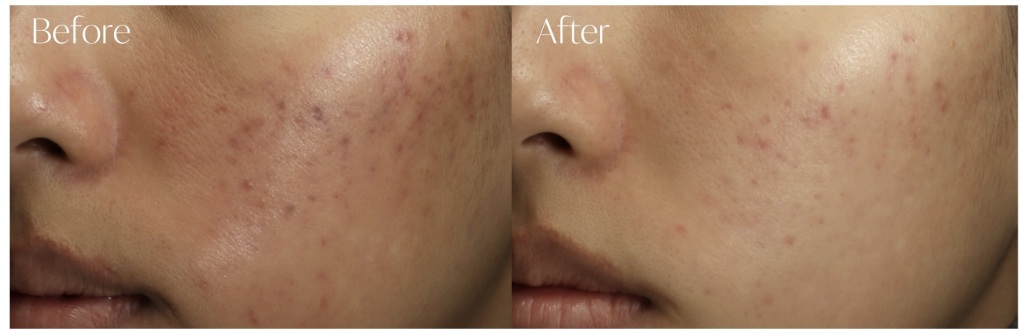 創傷治癒反応を引き起こし、肌の再生を促進させます。赤みや凸凹としたニキビ跡をなめらかに整えていきます。