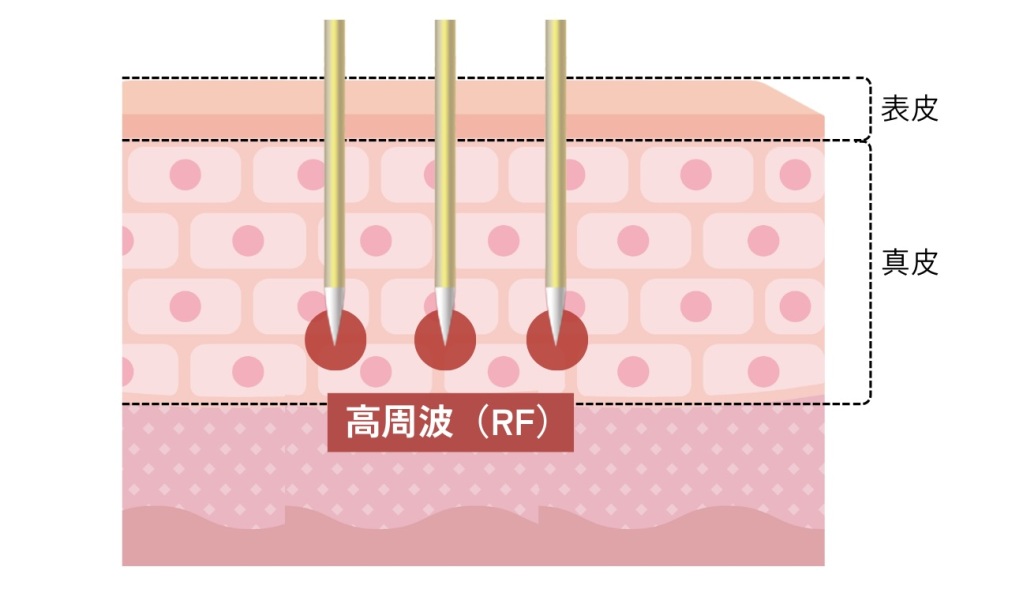 皮膚に微細な針を刺入し、針先からRFを照射します。