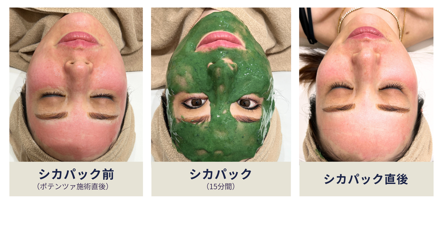 赤みやほてりに対して、CICA(ツボクサエキス)配合の鎮静パックをご用意しています。