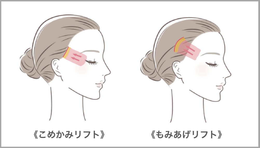 こめかみ(側頭部)から皮膚や筋膜を引き上げることで、目尻や頬の上部にかけてのたるみを改善する部分的なリフト施術です。