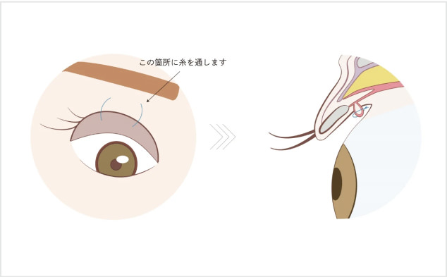 目を開ける筋肉である上眼瞼挙筋を糸で補強し、