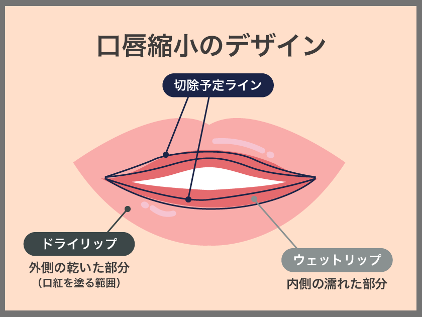 唇は表面の「ドライリップ」と内側の「ウェットリップ」に分かれますが、施術ではウェットリップを中心に切除することで、傷が目立ちにくく自然な仕上がりを実現します。