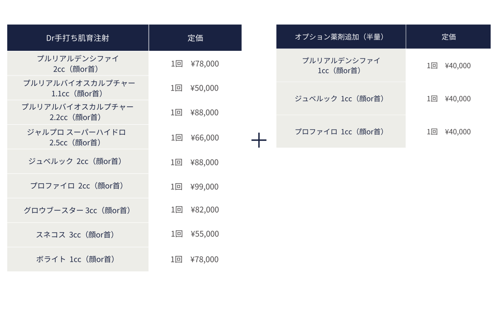 | プルリアルバイオスカルプチャー 1.1cc (顔or首) | ¥50,000 | ¥135,000 |