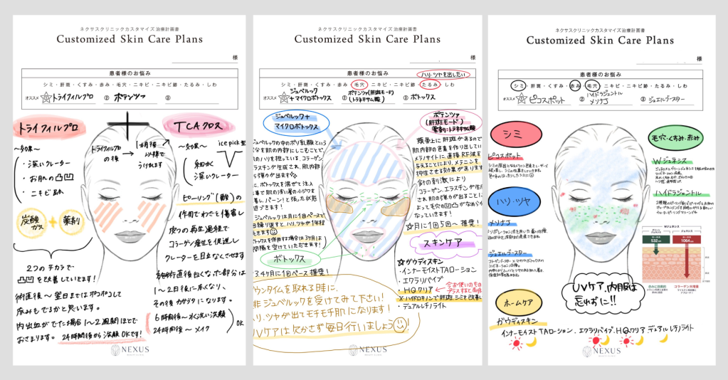 NEXUSクリニックでは、VISIA®の皮膚画像解析と医師の診察をもとに、1時間半のカウンセリングでお肌の状態を総合的に評価します。